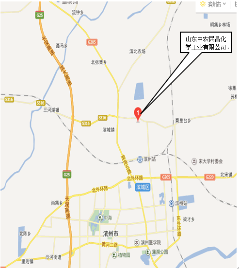 山東中農(nóng)民昌化學工業(yè)有限公司3000t/aS-異丙甲草胺項目位于山東中禾化學有限公司廠區(qū)內,西側為山東友泰科技有限公司待建廠區(qū)(石油化工企業(yè));西側圍墻外0.5米處有一條南北向架空電力線(桿高12米);東側為山東中禾化學有限公司(非石油化工企業(yè))生產(chǎn)裝置,廠區(qū)東為鳳凰八路(園區(qū)道路),路東為山東濱農(nóng)科技有限公司廠區(qū)(非石油化工企業(yè));北側為梧桐十路(園區(qū)道路),路北為山東友泰科技有限公司廠區(qū)(石油化工企業(yè));南側為梧桐九路,路南為濱州市利美精細化工有限公司(石油化工企業(yè))和山東明大新材料有限公司(非石油化工企業(yè))。 |