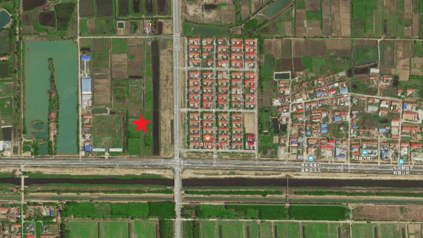 該項目距離東側民豐路路邊46m,該加油站位于東營市墾利區(qū)德州路與民豐路交叉口西北側。東側為民豐路,用地邊界距路邊46m,路東距用地邊界約100m處為高蓋村(人口約800人),其村內(nèi)幼兒園距站區(qū)邊界約720m。南側為德州路,用地邊界距路邊8.5m,路南為空地。西南方向約400m處為王營村。西側為樹林,北側為空地。 |
