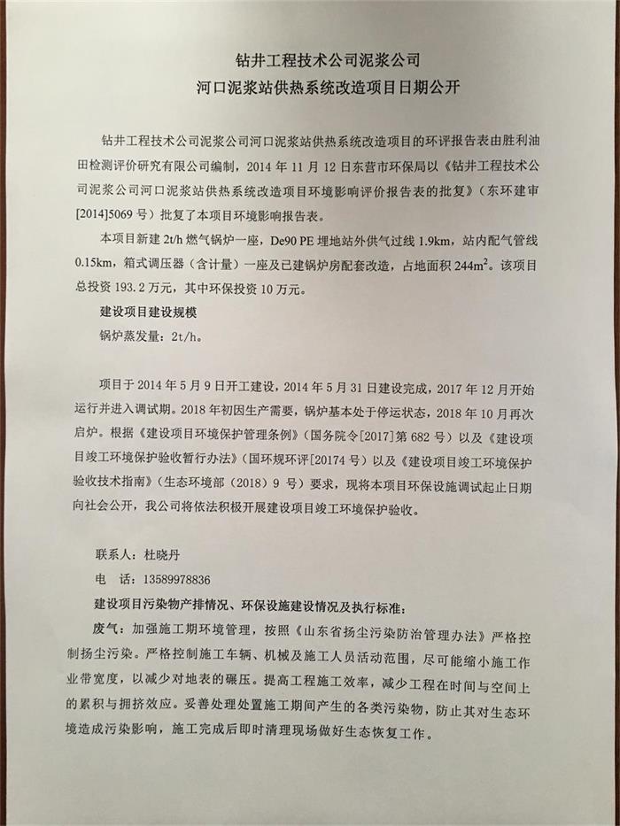 鉆井工程技術(shù)公司泥漿公司河口泥漿站供熱系統(tǒng)改造項(xiàng)目日期公開