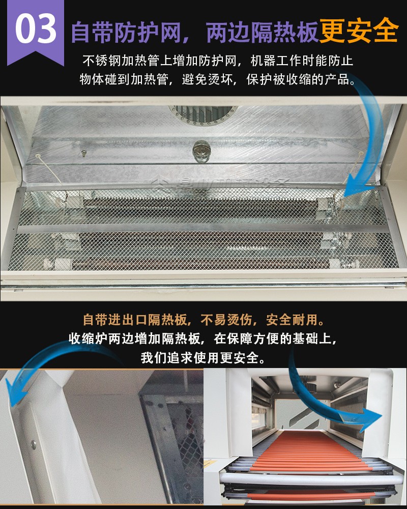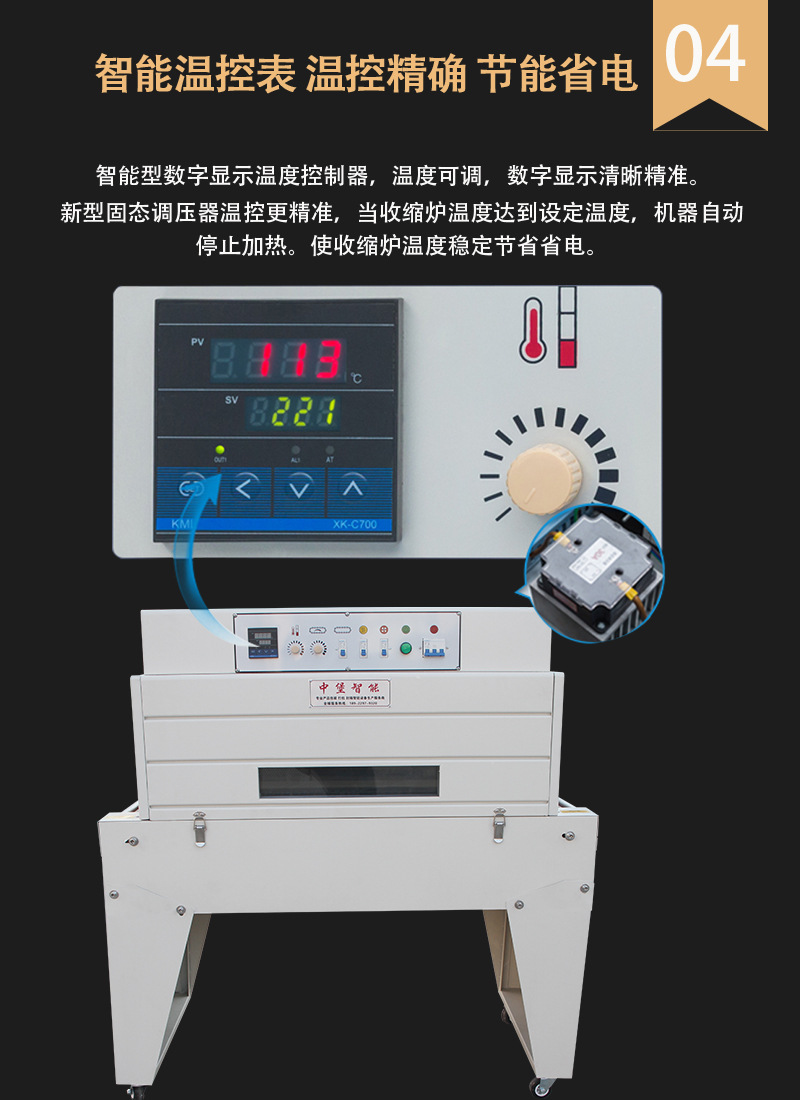 • 加熱功率:功率越大,升溫速度越快,能夠在更短的時間內使熱收縮膜達到收縮溫度,從而提高包裝效率。例如,高功率的熱收縮包裝機可以在幾秒鐘內將收縮膜加熱至合適溫度,而低功率的設備可能需要更長時間。