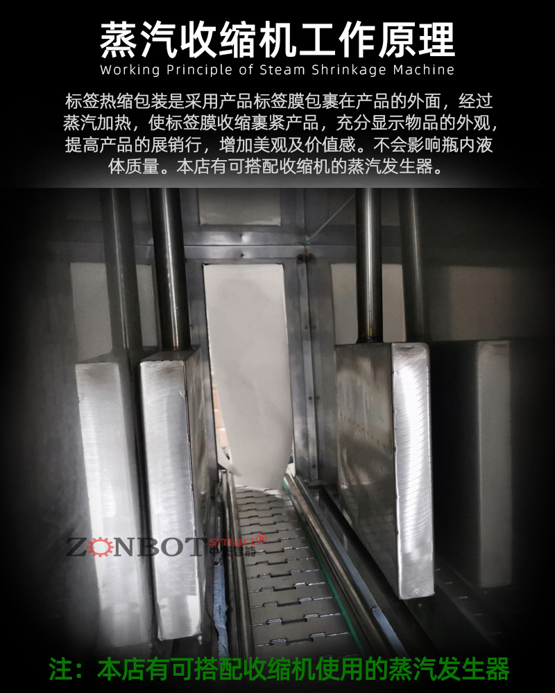 3. 加熱室:產品在加熱室內接受蒸汽的加熱,使收縮膜收縮。加熱室的設計應確保蒸汽均勻分布,以保證收縮效果的一致性。