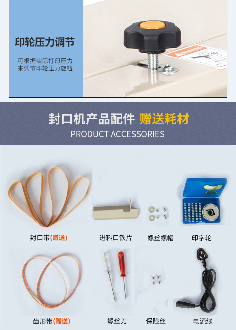 - 高效連續封口:能夠以較高的速度連續對物品進行封口,大大提高了生產效率。適合大規模生產和流水線作業。