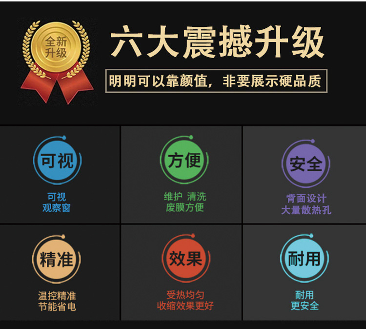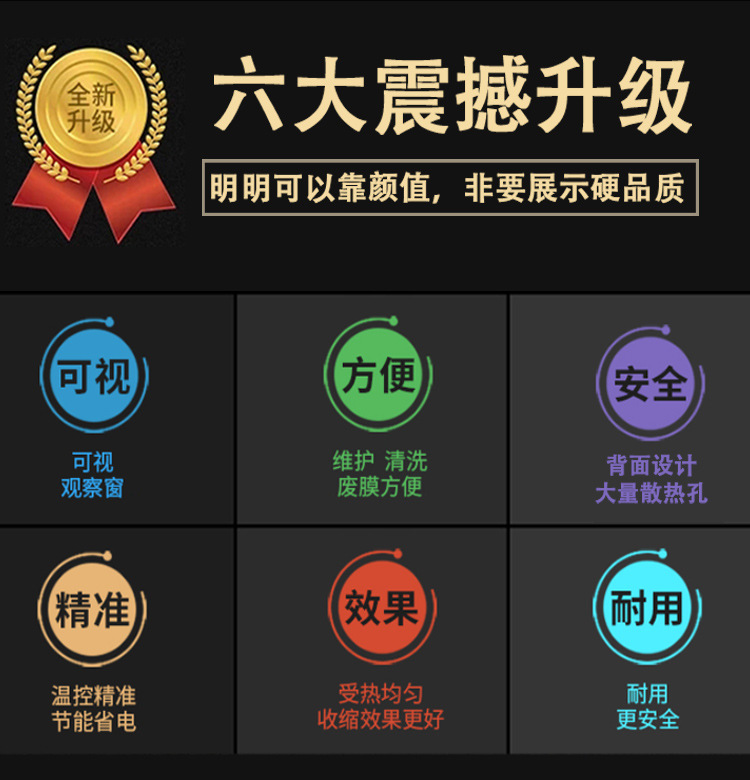 - 溫度控制系統的精度很重要,一般能夠精確控制在 ±5℃左右,這確保了薄膜在合適的溫度范圍內收縮,避免因溫度過高導致薄膜損壞或者溫度過低而收縮不完全的情況。