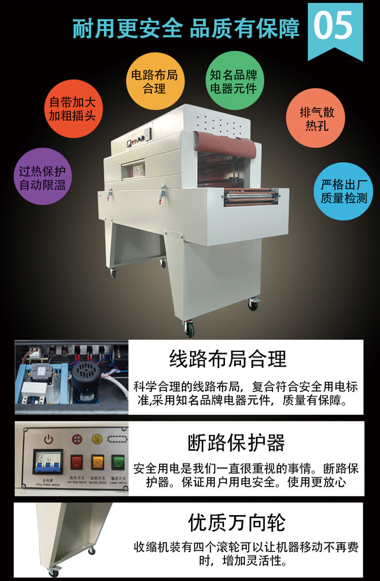 - 全封閉式熱收縮包裝機:這種機器可以將產品完全包裹在熱收縮薄膜內,形成一個封閉的包裝。適用于對防潮、防塵要求較高的產品,如電子產品、精密儀器等。