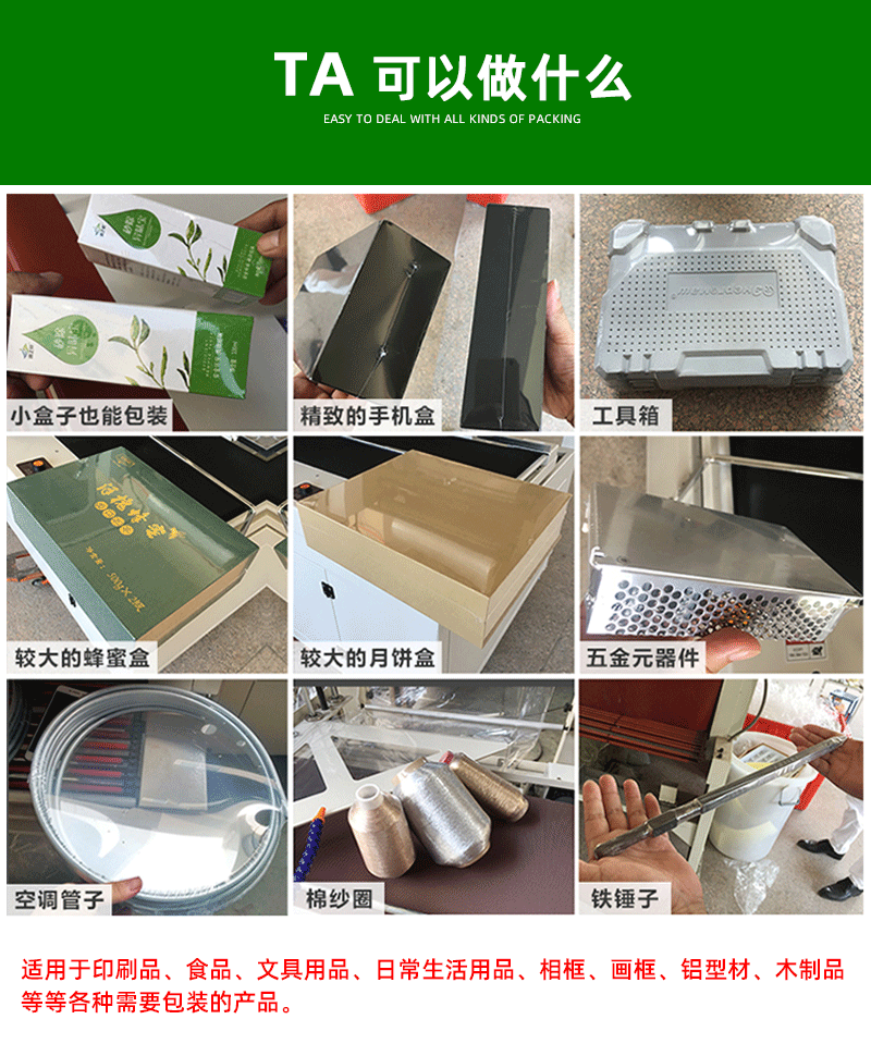 - 電子行業:對電子元件、手機、電腦等產品進行包裝,可防止灰塵、濕氣等進入,保護產品的質量,同時也能提高產品的包裝美觀度。