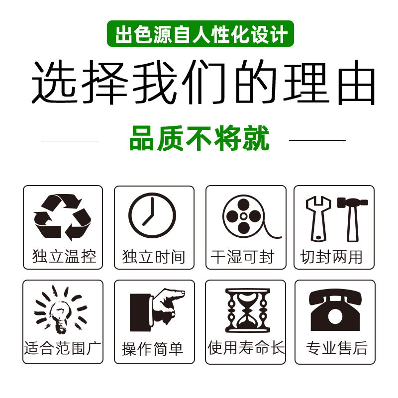 • 根據不同的包裝袋材質和封口要求,準確設置溫控裝置的溫度值。這一點非常重要哦!如果溫度設置過高,可能會導致包裝袋封口處燒焦,影響封口質量;如果溫度設置過低,可能會造成封口不牢固,容易出現開口現象。所以在使用之前,最好先對不同材質的包裝袋進行一些測試,找到最適合的溫度設置,這樣才能保證封口質量良好。
