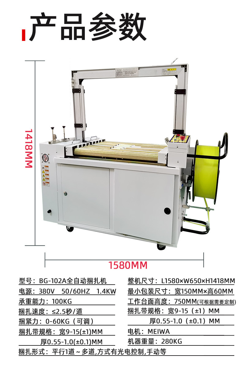 - 打包質量穩定:由于采用了精準的機械和電氣控制系統,打包帶的拉緊程度、熔接質量等都能得到很好的控制。打包帶能夠緊密地貼合在物品表面,熔接牢固,能夠有效防止物品在運輸過程中散開。這樣可以保證包裝的質量,減少因包裝問題導致的物品損壞。