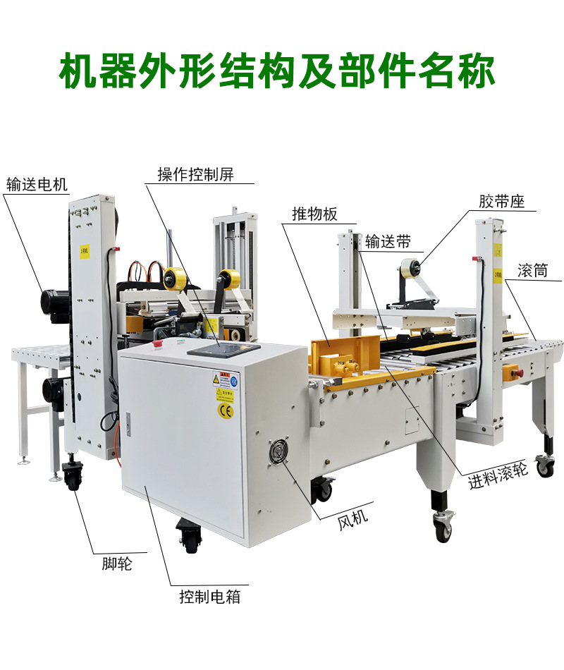 • 上下長邊封箱機(jī)構(gòu):這部分機(jī)構(gòu)主要負(fù)責(zé) “工” 字上下兩橫的膠帶粘貼。它包括膠帶架、膠帶導(dǎo)向輪、膠帶切割刀和膠帶粘貼部件。膠帶從膠帶架引出,經(jīng)過導(dǎo)向輪引導(dǎo)方向,然后通過粘貼部件將膠帶粘貼在紙箱的上下長邊。切割刀在合適的位置切斷膠帶,完成上下長邊的封箱。