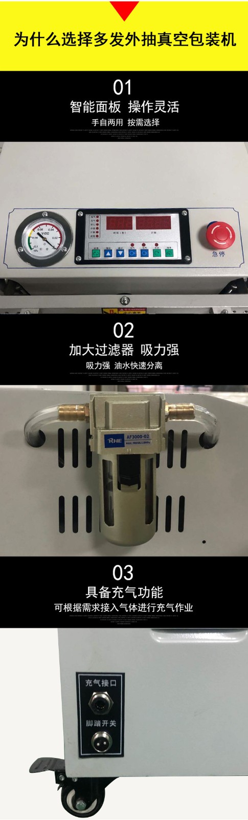 外抽真空包裝機主要是通過外置的真空泵來抽取包裝袋內的空氣,從而達到真空包裝的目的