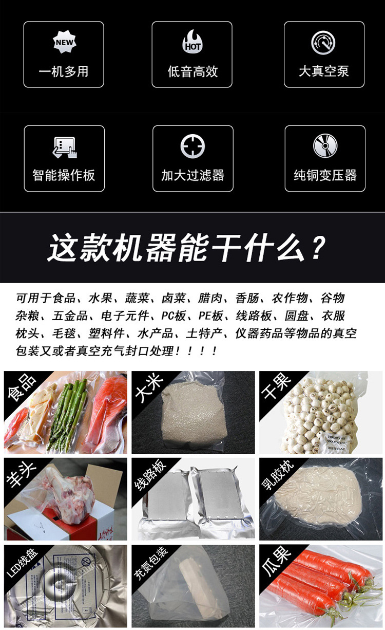 • 適用范圍廣:在食品、電子、五金、化工、醫藥等眾多行業都有廣泛應用。例如,在食品行業可以包裝各種食品,包括生鮮肉類、干貨、休閑食品等;在電子行業可以包裝電子元件、電路板等,防止受潮和氧化。