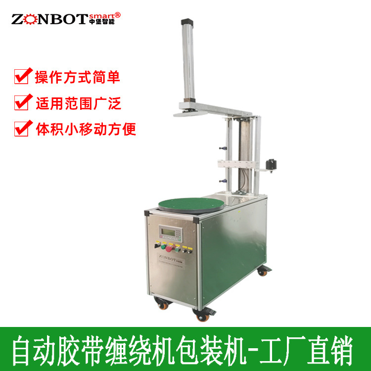 • 工作原理:將需要纏繞膠帶的產(chǎn)品放置在機(jī)器的工作區(qū)域,通常是在底盤的中心位置或者通過特定的夾具固定。啟動機(jī)器后,膠帶從膠帶架被拉出,經(jīng)過供給裝置的滾輪引導(dǎo),膠帶的一端粘貼在產(chǎn)品上。然后旋轉(zhuǎn)臂開始旋轉(zhuǎn),帶動膠帶圍繞產(chǎn)品進(jìn)行圓周運(yùn)動,將膠帶均勻地纏繞在產(chǎn)品表面。在纏繞過程中,根據(jù)設(shè)定的參數(shù),如纏繞圈數(shù)和速度,機(jī)器會自動完成纏繞動作。當(dāng)達(dá)到設(shè)定的圈數(shù)后,旋轉(zhuǎn)臂停止旋轉(zhuǎn),膠帶被切斷(有些機(jī)器有自動切斷功能,有些需要手動切斷),完成纏繞過程。