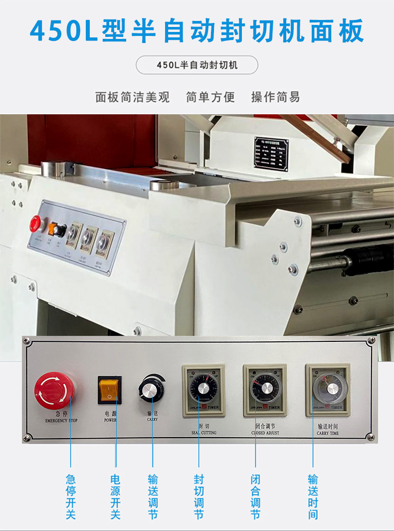 操作人員可以通過操作面板設置封刀溫度、切刀運動時間、感應靈敏度等參數。一些半自動封切機還具備簡單的故障提示功能,當機器出現異常情況時,操作面板上會顯示相應的錯誤代碼,方便用戶進行初步的故障排查。