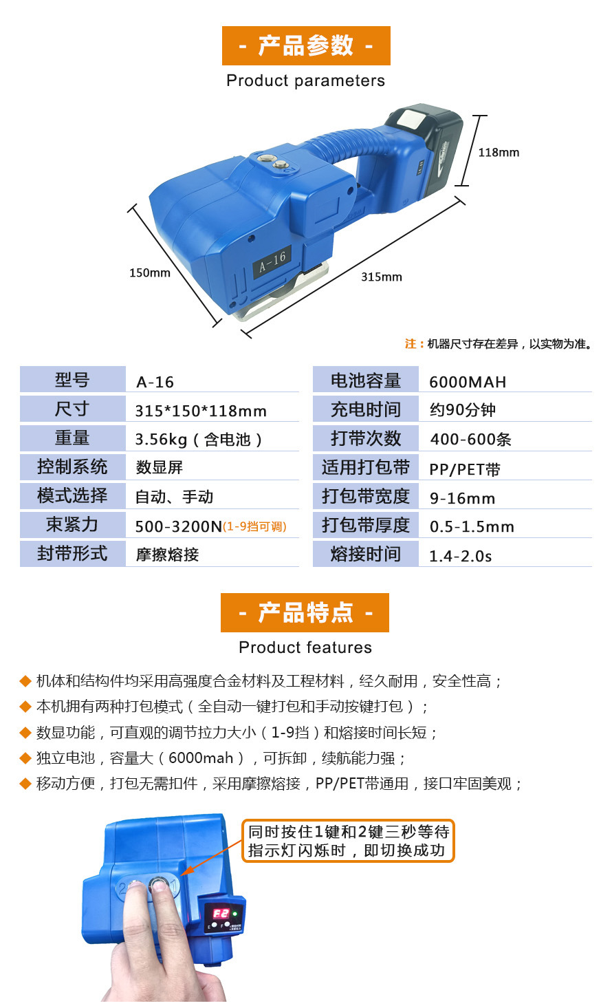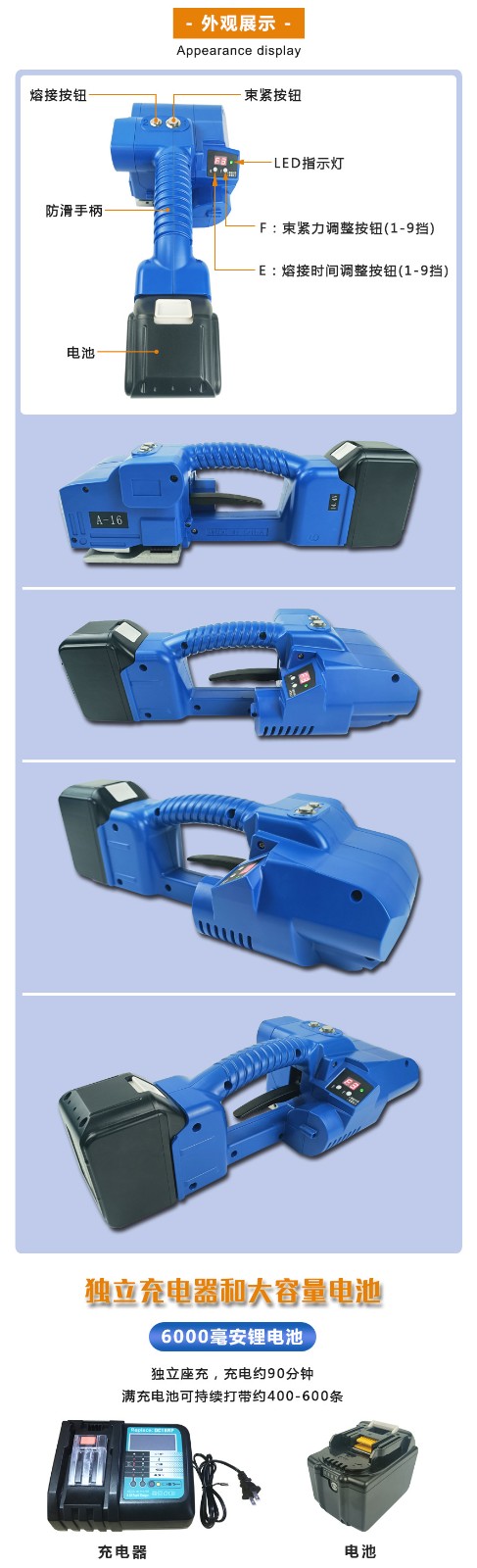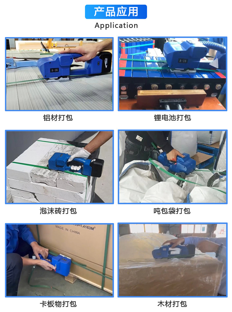 - 體積小、重量輕,便于攜帶到各種工作場所。無論是在倉庫的貨架旁、運輸車輛內還是在戶外的臨時包裝點,都可以輕松使用。工作效率較高,對于小批量或臨時的打包任務,能夠快速完成打包操作。例如,在活動現場對禮品盒或宣傳資料進行打包時,手持打包機可以迅速投入使用。
