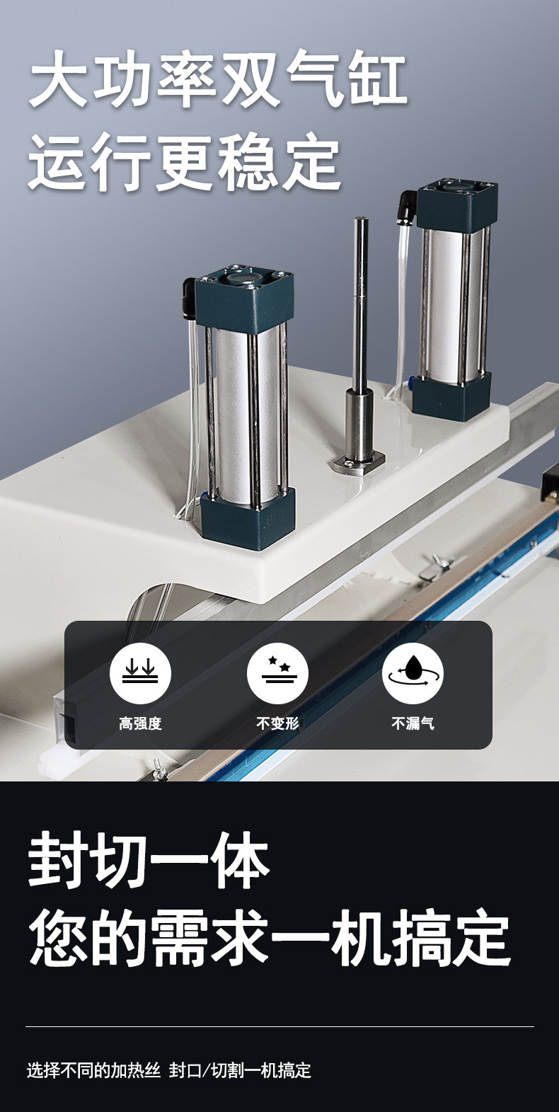 - 施壓封口:在包裝材料熔化后,設備會通過機械壓力將軟化的封口部分緊密貼合,完成封口動作。