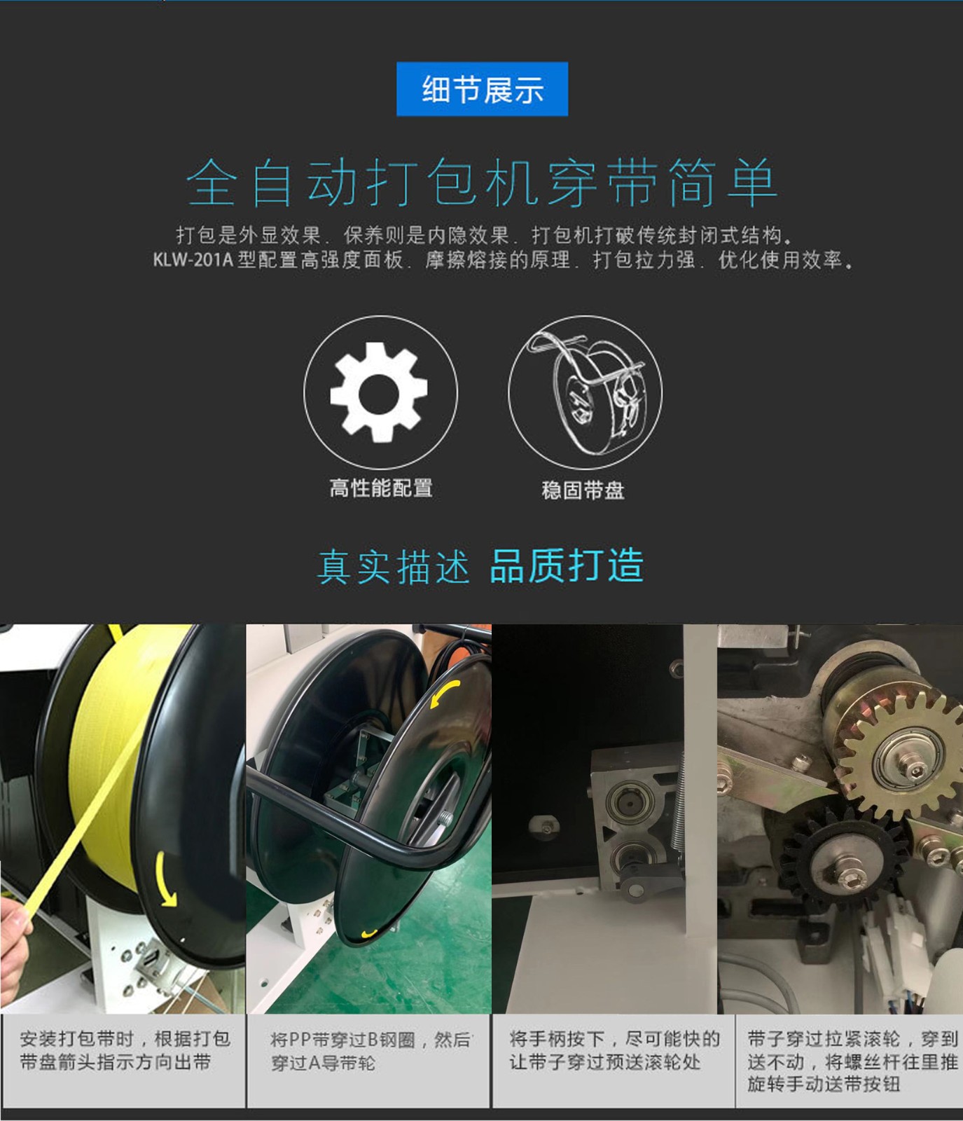 • 封合機(jī)構(gòu):若是熱熔封合,配備加熱片、溫控裝置;摩擦焊接封合則有對(duì)應(yīng)的摩擦輪組件,目的是將打包帶的兩端完美連接。