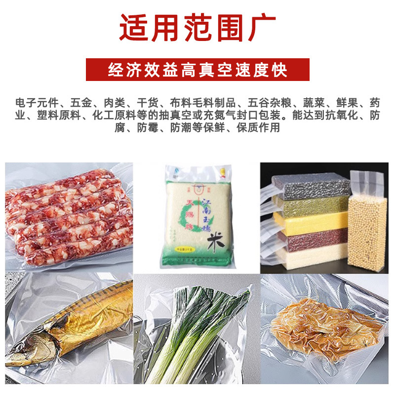 通過真空泵抽取包裝袋內的空氣,形成負壓環境,從而減緩氧化反應、細菌生長及水分蒸發,達到延長食品保鮮期等目的 。