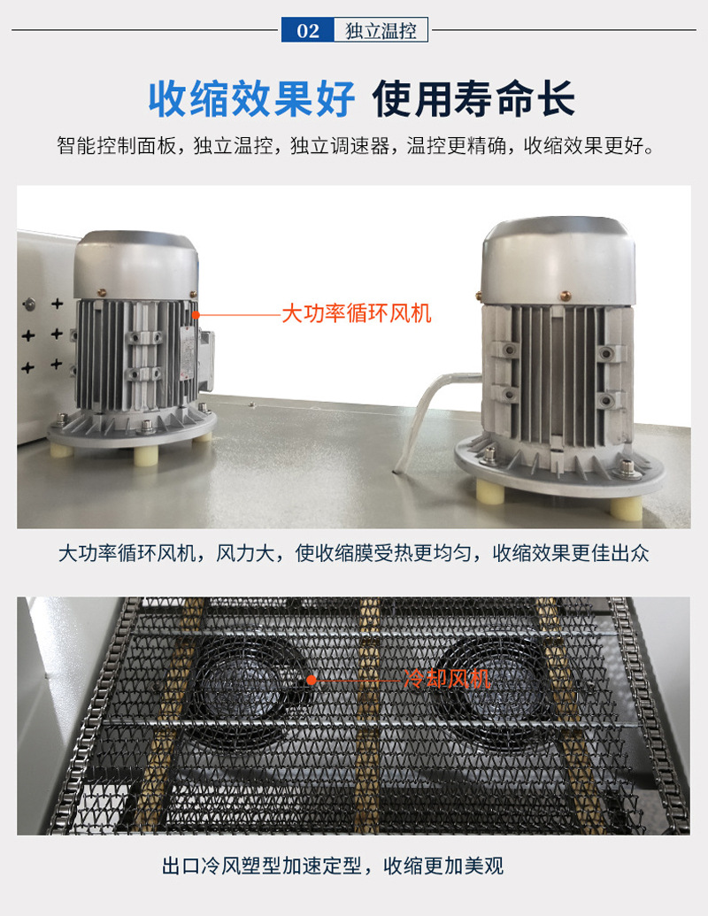 冷卻系統(tǒng):在熱收縮完成后,對產(chǎn)品進行快速冷卻,使 PE 膜迅速定型,增強包裝的牢固性和穩(wěn)定性,常見的有風冷裝置 。