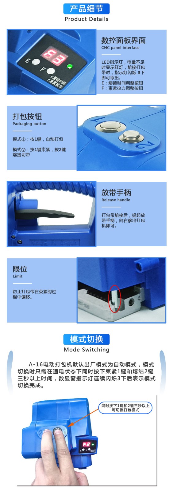 - 適用打包帶規(guī)格:包括帶寬和帶厚,常見(jiàn)的帶寬范圍在 12mm 至 19mm 之間,帶厚在 0.4mm 至 1.0mm 之間 2。