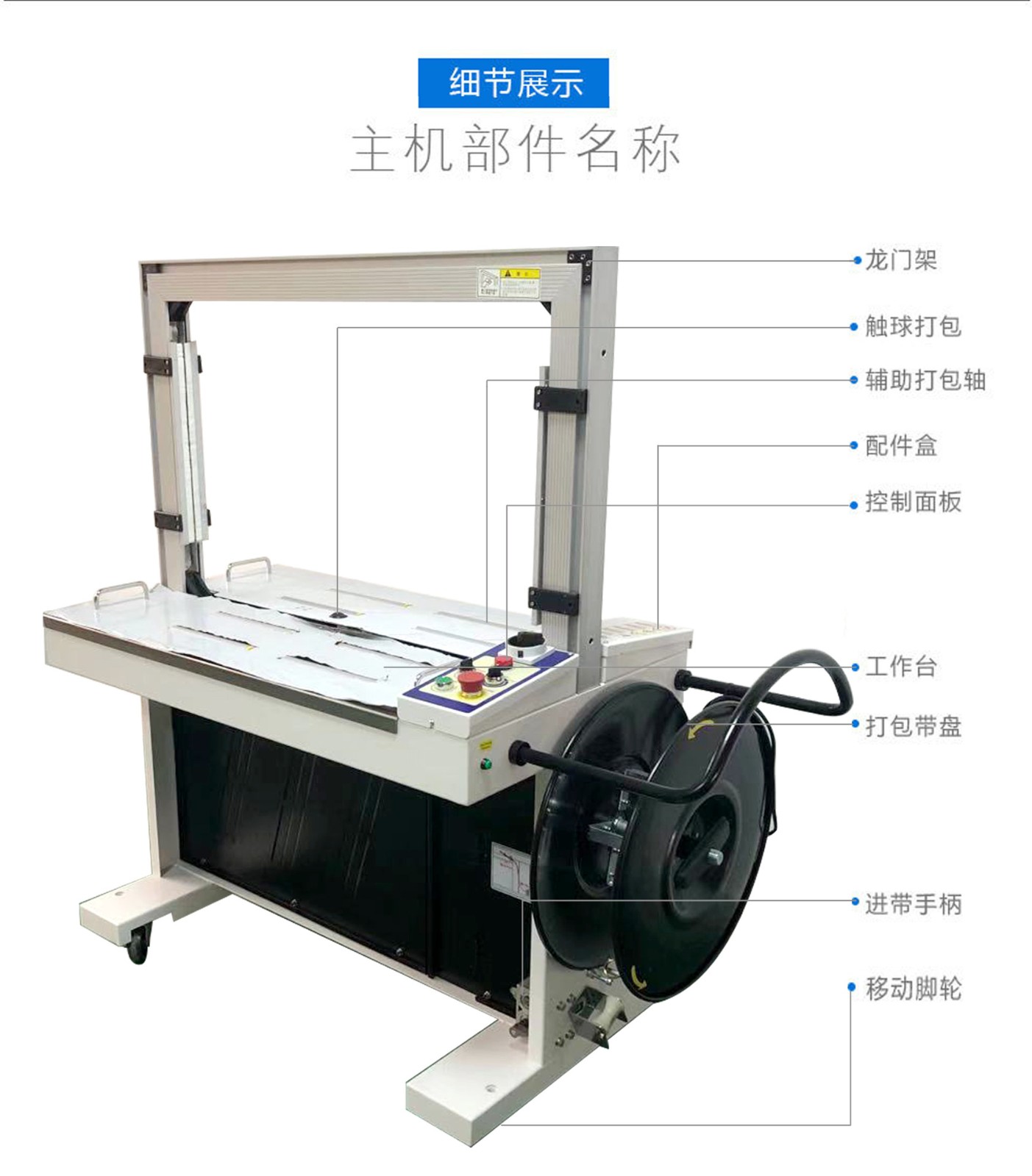 - 高臺標準型:臺面無動力,需人工推送包裝物品通過打包機 1。
