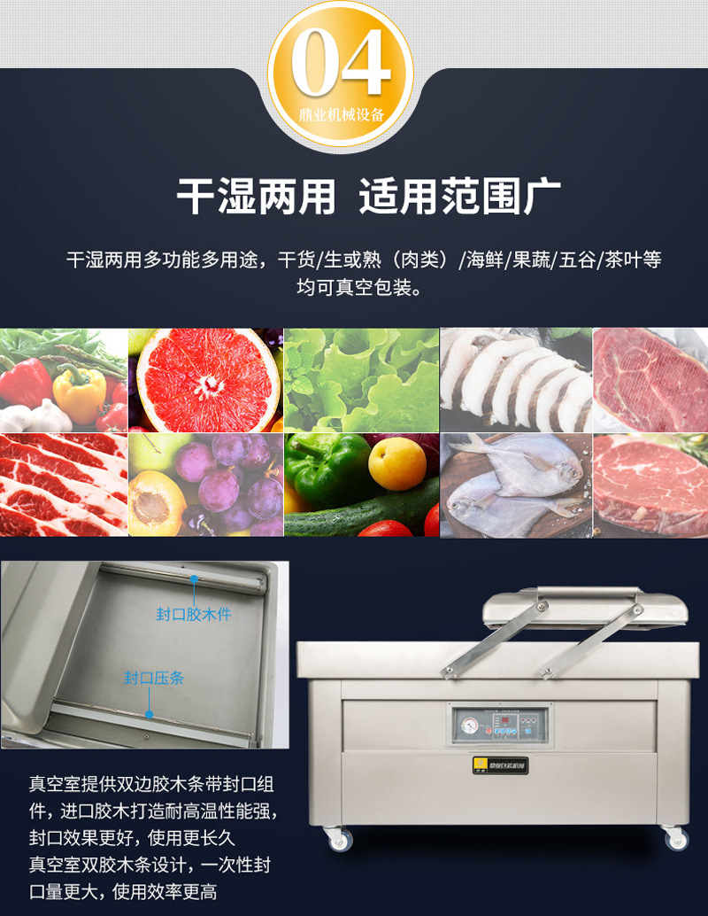 雙室內抽真空包裝機是一種高效實用的包裝設備,以下為您詳細介紹: