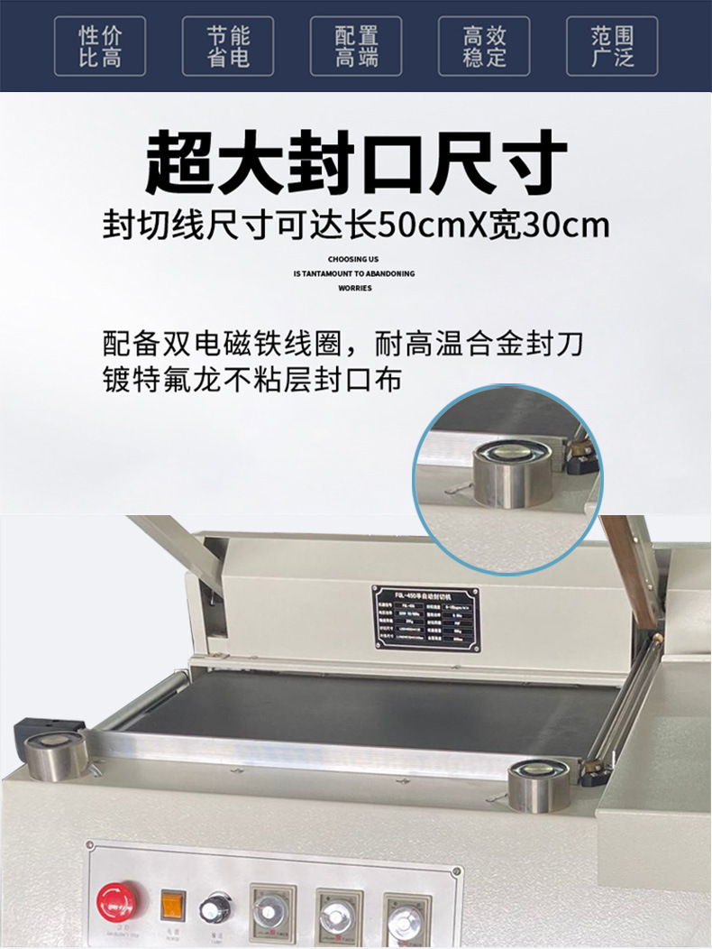 - 成本較低:相比全自動封切機,結構簡單,價格實惠,減少設備采購成本。人工參與部分操作,降低設備維護和維修成本,適合中小企業和創業型企業。