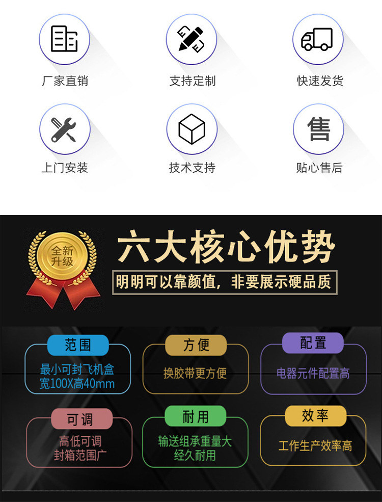 飛機(jī)盒封箱機(jī)確實(shí)具備自動完成飛機(jī)盒輸送、折蓋和封口等一系列動作的功能,在提高封箱效率、節(jié)省人工成本方面優(yōu)勢顯著,以下為你詳細(xì)介紹其體現(xiàn):