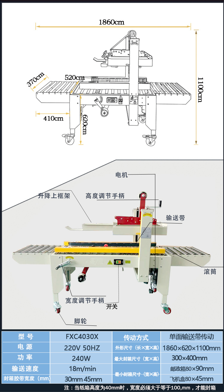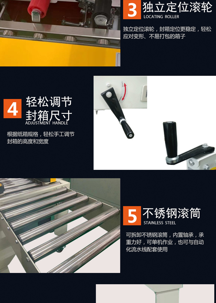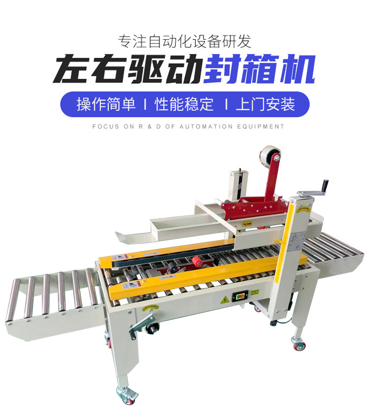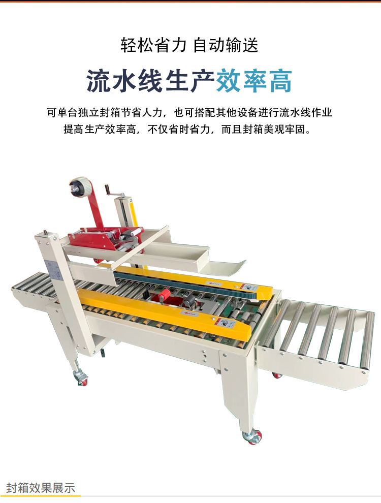 - 精準(zhǔn)高效:封箱機(jī)通過精確的機(jī)械設(shè)計(jì)和控制系統(tǒng),能夠準(zhǔn)確地完成每個(gè)封箱動作,避免了人工操作可能出現(xiàn)的失誤和偏差,從而保證了封箱的質(zhì)量和效率。