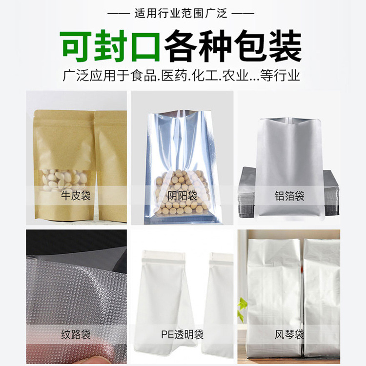 - 封口尺寸:封口的長度和寬度越大,每次封口所需的時間就越長,從而影響工作效率。例如,對大尺寸的包裝袋進行封口,封口機的壓頭需要覆蓋更大的面積,加熱和施壓的時間會相應增加。
