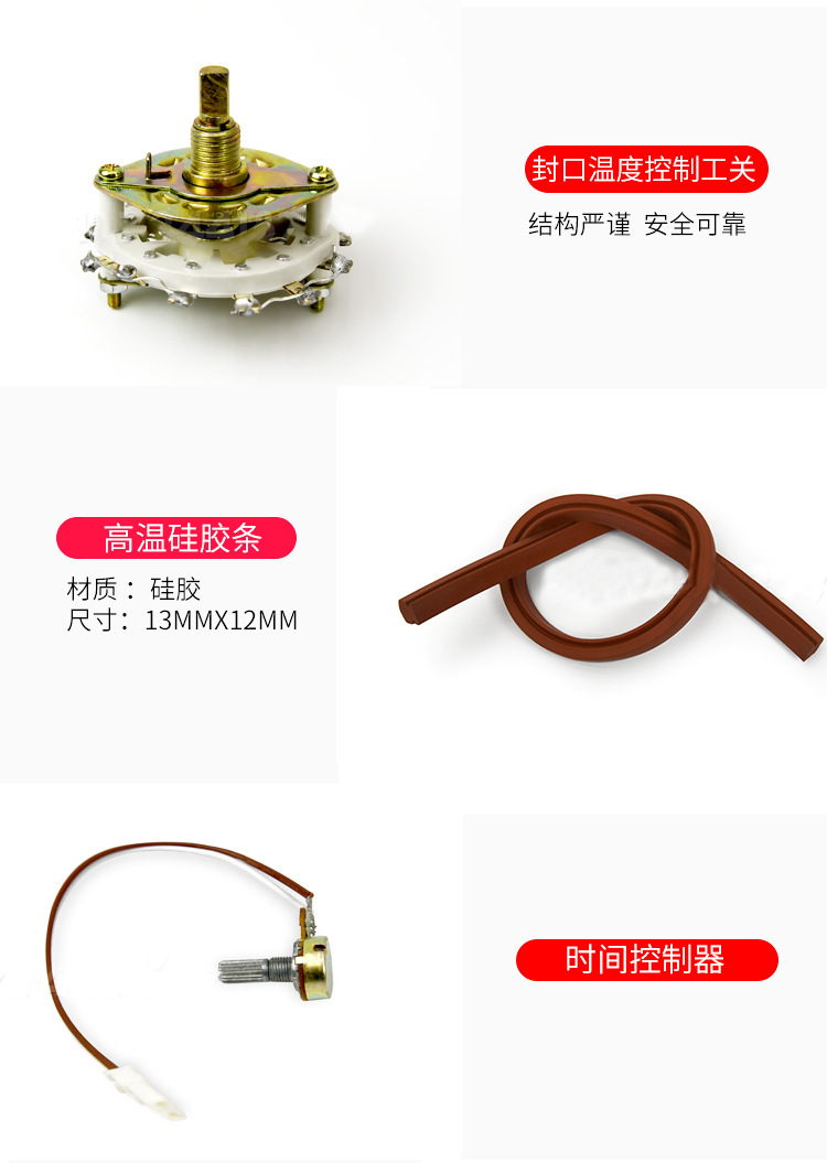 • 故障原因:加熱溫度不夠,加熱時間過短,封口壓力不足,封口處有異物或不平整,加熱絲老化。