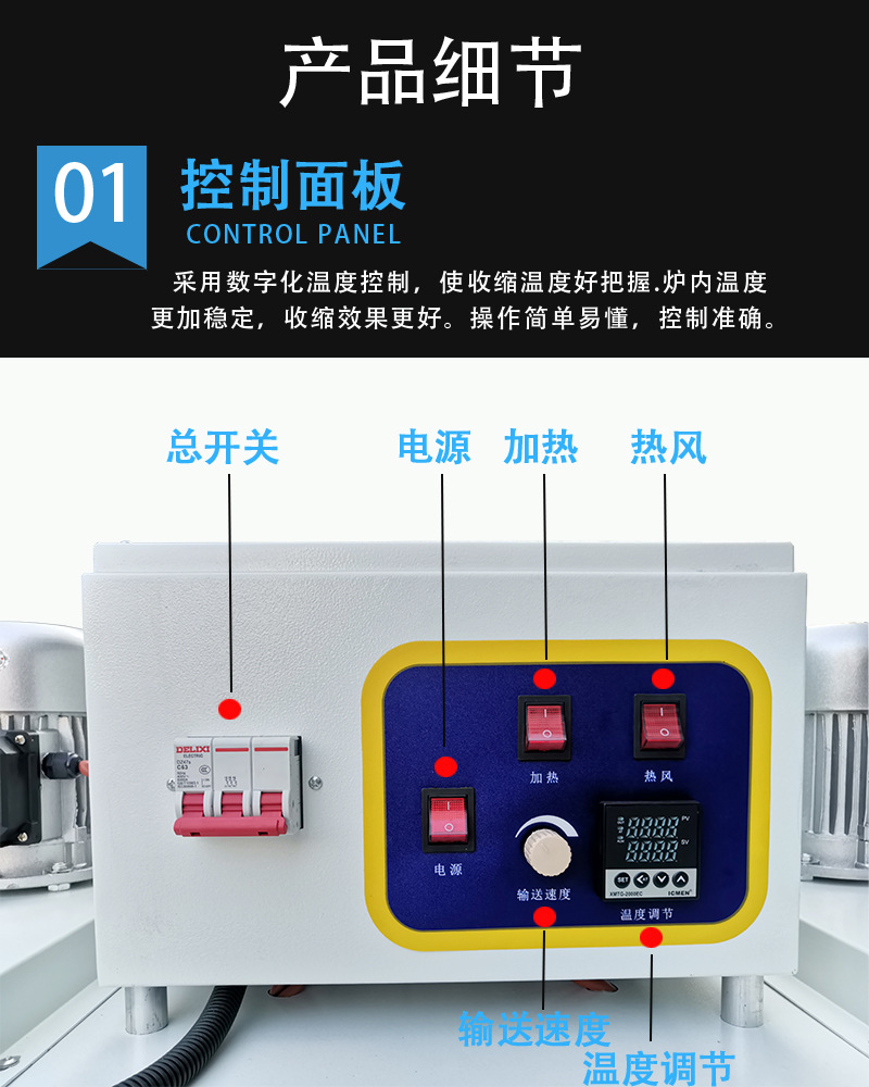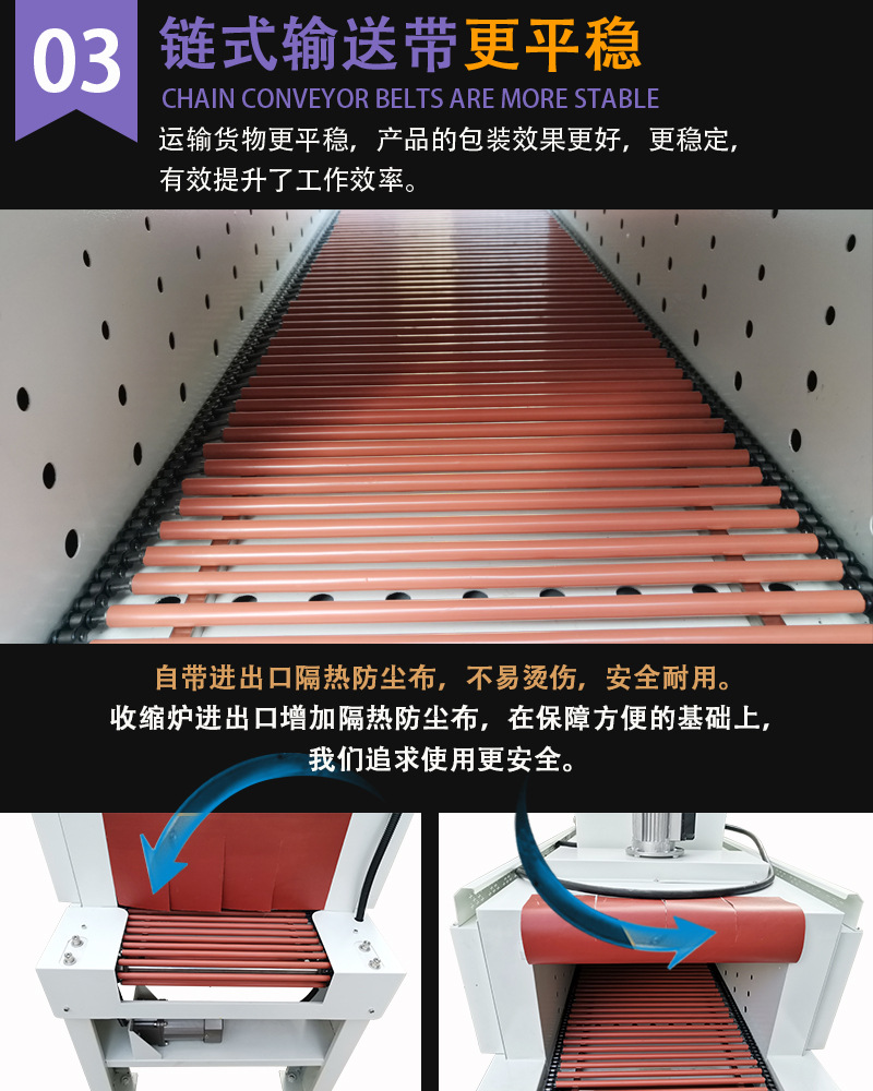 并且在運送的過程中產品運送部分選用極大功率的直流電機進行運送,還能可進行無級調速,一同它的承載率較高。能夠長時間連續作業而作業仍然能夠抵達安穩可靠的效果。這種收縮機它的一切的電器部件都是選用的優質的國際國內的名牌構件,這樣也使整臺機器的全體質量得到了有用的確保,能讓廠家在購買的時分更加安心,放心。