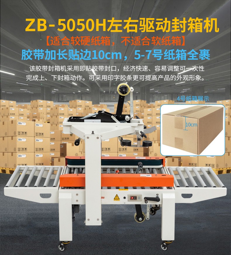 紙箱自動(dòng)封箱機(jī)具有廣泛的用途,適用于家用電器、紡織、食品、日用百貨、藥品、輕工、化工等各種行業(yè)產(chǎn)品包裝、紙箱的封箱,可單獨(dú)封箱作業(yè),亦可與充填、捆包配套成流流水線使用,為包裝標(biāo)準(zhǔn)流水線作業(yè)所必需的設(shè)備。 自動(dòng)調(diào)整不同規(guī)格的紙箱高度與寬度。 側(cè)邊驅(qū)動(dòng)式自動(dòng)校正調(diào)整、送箱、運(yùn)轉(zhuǎn)平穩(wěn)