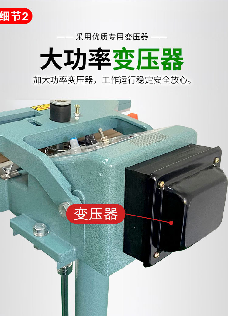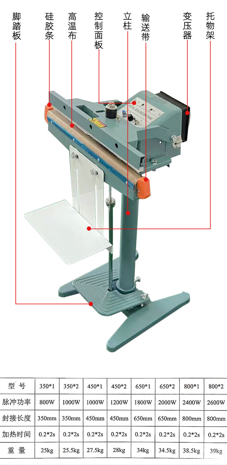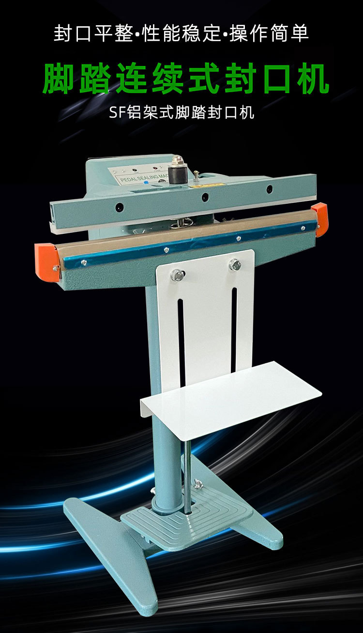 腳踏封口機是一種理想的封口設備,?適用于各種塑料袋薄膜的封口及制袋。?它特別適用于醫藥、?農藥、?食品、?日化、?潤滑油等行業的鋁箔袋、?塑料袋、?復合袋的封口。?這種設備利用電氣脈沖技術,?能夠顯著縮短封口時間,?從原來的2-4秒縮短至0.2秒,?具有投資少、?效益高、?封口長度長、?操作簡單等特點。?因此,?腳踏封口機被廣泛應用于食品、?醫藥、?土特產、?電器軟件、?工廠、?商店、?服務行業等領域,?成為這些行業中不可或缺的封口設備1。?