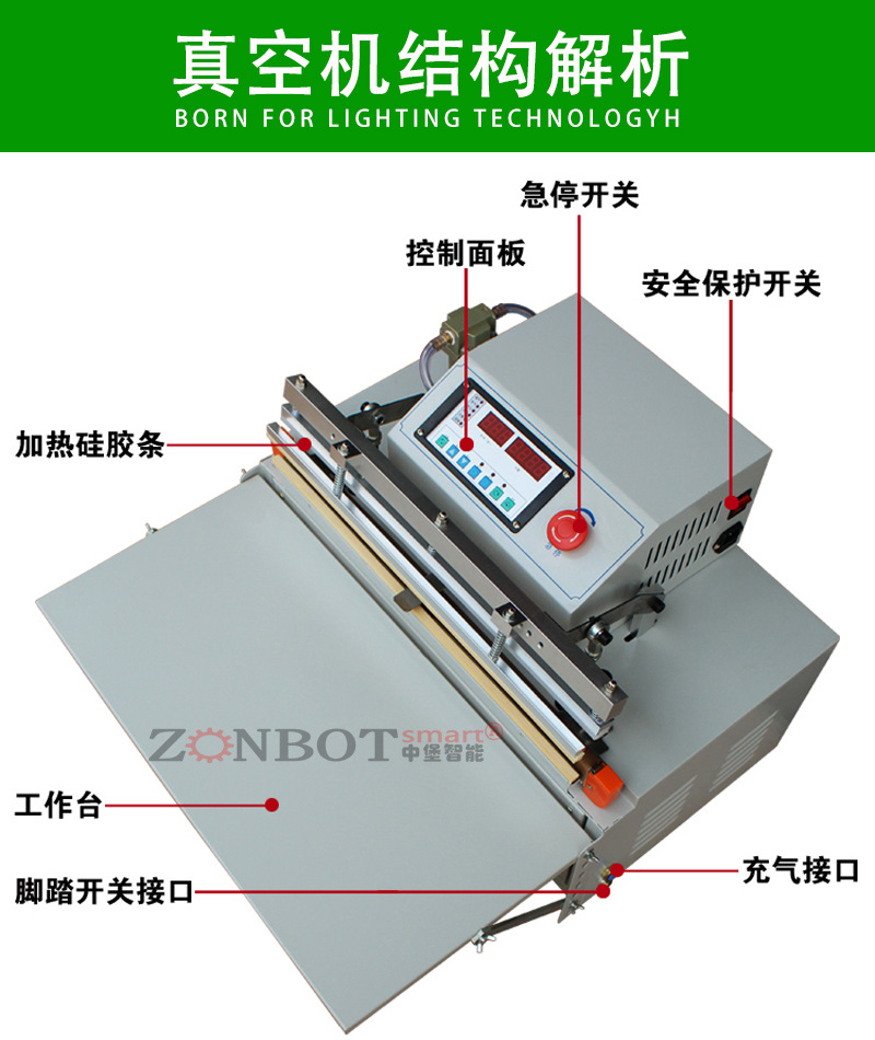 首先,將待包裝物品放入合適的包裝袋中,并將袋口放置在機器的封口處。然后,啟動機器,外置抽氣嘴開始抽取袋內空氣,達到設定的真空度后,機器自動進行封口操作。