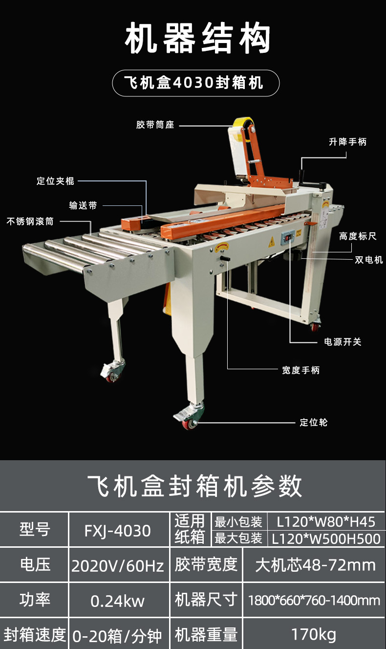 4030X全自動紙箱膠帶封箱機郵政紙箱包裝機膠帶封箱透明膠帶打包